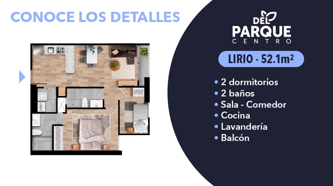 Estar en contacto con la naturaleza nos ayuda a acercarnos más a nosotros mismos, nos permite disfrutar de nuestro planeta y pasar tiempo de calidad con nuestra familia. Pensando en eso les presentamos Del Parque Centro, un proyecto que te brinda 2,100 m2 de parques y alameda para que disfrutes de la naturaleza más cerca a tu hogar y le des experiencias inolvidables a las personas que más amas.